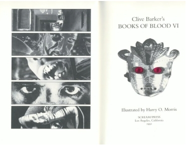 The title page from the Scream/Press edition of Clive Barker's Books of Blood Volume VI. Scream/Press issued some of the most beautiful books made in the 1980's and early 1990's. |