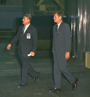 Werner Von Braun gives JFK a tour of NASA. -- Rickk |
