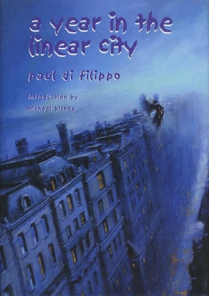 If you find yourself in a cootie situation there is, if not a cure, at least a compensation. That is to pony up some real bucks and buy dad one of the 800 or so copies of Paul Di Filippo's 'A Year In The Linear City'. I'm telling you right now, it's not going to arrive in time unless you do some serious shipping. But whenever it arrives, if you know someone (even yourself) who loves Big Wow science fantasy of the likes of China Mieville, then you owe it to yourself, or whomever you're buying for to get this book and get it pronto. There's not a whiff of cheese about it. It's a full quality production, a fact I will now demonstrate by publishing a full size scan of the front cover illustration, not too coincidentally, I might add, done by Edward Miller, the gent who did the illos for 'Perdido Street Station' and 'The Scar'.