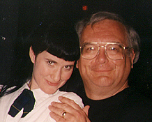 Poppy and I finished before the pairing of Ramsey and Schow, and when I came back down to join Claire, she was having a blast watching a film that Schow had been involved in. This had to be one of the goofiest things I'd ever seen, a black and white send-up of all those 1950's horror-sci-fi films that was totally hilarious. Bubble helmets, beautiful girls who shed their spacesuits to reveal the Bikini Within, great CDEs (Cheesy Digital Effects). I really liked this, and what's more, Claire really enjoyed both Schow's presentation and Ramsey's story. I was frankly prepared for her to be put off by both, but she'd twigged to the same realization that I had. We're both readers, and we both realized that conventions are indeed the perfect vacation for readers. Later that evening, we went out to dinner at a fin Italian restaurant, since we couldn't find the Ethiopian restaurant that Ramsey had suggested. It was one of the best dinners we'd had out in a long time. The restaurant was La Gondola. The waiter was funny and entertaining but not annoying, the food was fantastic, and the price was moderate.