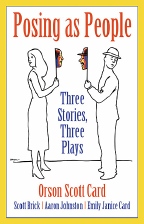 'Posing as People' unusually, helps the reader out. The book, a collection of three short plays by various authors and the Orson Scott Card short stories on which they are based, is accompanied by CDs of the live performances, adding another dimension to the reading experience. The plays were not designed as radio plays, and it’s a shame that they fail to convey strong visual elements such as the young and old Charlie in 'Clap Hands and Sing' and the limbless girl in 'Sepulchre of Songs'. Nonetheless, the audio recordings are sufficient to give a strong impression of the characters involved and the quality of the acting.